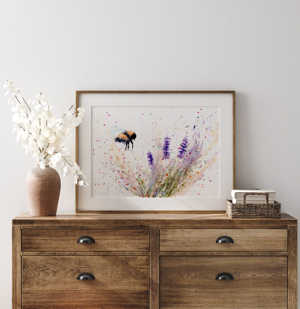 Bee & Lavender Watercolour Painting - 'Lavender Honey' 17" x 12"